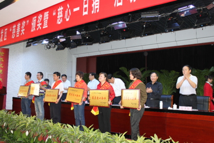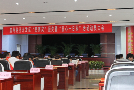 濱州傳媒網(wǎng)訊(記者郭瑩 通訊員李華)2011年5月26日上午,開發(fā)區(qū)隆重舉行2010年度“慈善獎(jiǎng)”頒獎(jiǎng)和2011年度“慈心一日捐”活動(dòng)動(dòng)員大會(huì)。會(huì)議由開發(fā)區(qū)黨工委委員、主任助理、公安分局局長(zhǎng)張愛國(guó)同志主持,黨工委書記、管委會(huì)主任姚和民同志到會(huì)并作重要講話,會(huì)議表彰了2010年度為慈善事業(yè)做出突出貢獻(xiàn)的單位和個(gè)人,區(qū)黨工委委員、管委會(huì)副主任、慈善總會(huì)會(huì)長(zhǎng)馬景澤同志接收了7家企業(yè)的捐贈(zèng),其中,福豪鋼材市場(chǎng)管理有限公司認(rèn)捐基金200萬(wàn)元,海得曲軸有限責(zé)任公司認(rèn)捐基金200萬(wàn)元,華晨新型建材有限公司認(rèn)捐基金100萬(wàn)元,中大兆華牧業(yè)科技有限公司認(rèn)捐基金100萬(wàn)元,金河房地產(chǎn)開發(fā)有限公司認(rèn)捐基金100萬(wàn)元,